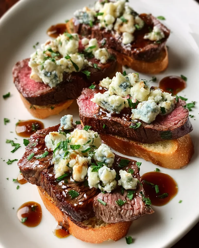 In my kitchen, I always reach for my trusty cast-iron skillet and a fresh French baguette the moment I decide to make these crostini. The key is to achieve that beautiful brown crust on the beef by searing it over medium-high heat, then finishing it in a hot oven. Meanwhile, brushing garlic-infused butter onto baguette slices and toasting them until golden creates the perfect base. Once everything comes together—with crumbled Gorgonzola melting gently over warm beef—you’ve got a bite that’s at once savory, creamy, and brightened by a sprinkle of fresh parsley and optional drizzle of balsamic glaze. Trust me, your guests will be asking for the recipe before they’ve even finished the first round.