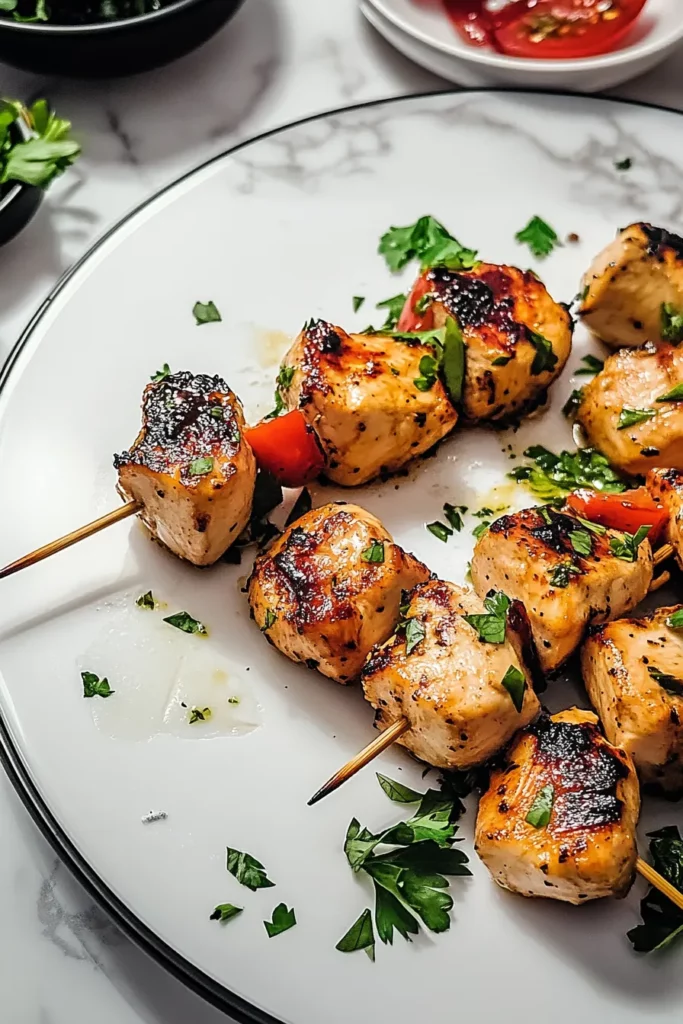 8. Serve the chicken skewers with your favorite sides—think warm flatbreads, fragrant rice, crisp salads, or creamy dips—for a complete, crowd-pleasing meal.