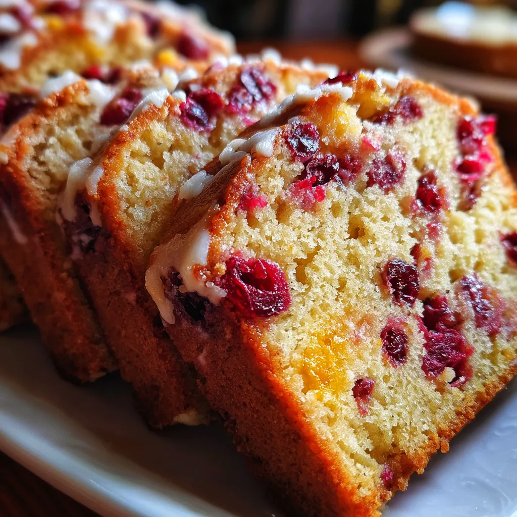 Tangy cranberries mingle with fragrant orange zest in a moist, golden crumb. Each slice carries a hint of cinnamon spice and a buttery finish that warms your senses from the first bite.
