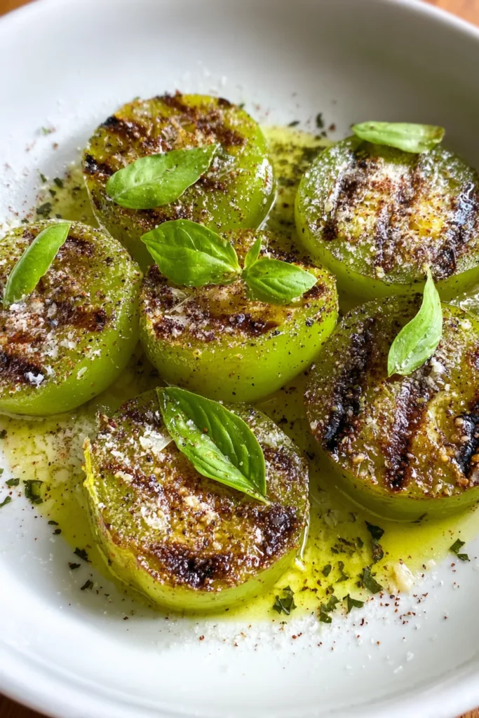 From the first bite, you’ll notice how each flavor element plays off the others: the gentle crunch of the tomato skin gives way to a juicy interior that’s been lightly seasoned and perfectly cooked. Sprinkling on a bit of Parmesan cheese introduces an irresistible umami note, elevating every mouthful. With only 10 minutes of prep time and 8 minutes of cooking, this dish comes together in under 20 minutes and clocks in at just around 180 calories per serving. It’s an ideal appetizer, lunch, or dinner side that captures the essence of summer grilling. Savor the tangy goodness of grilled green tomatoes with this easy and delicious recipe!