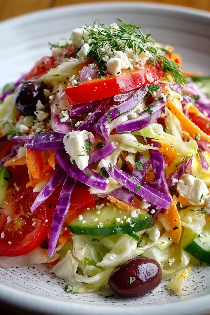 A crisp bed of mixed greens, cherry tomatoes, cucumber ribbons, and thinly sliced red onion dressed with a light vinaigrette adds a refreshing crunch. The bright acidity and herbal undertones of the salad cut through the richness of the BBQ sauce.