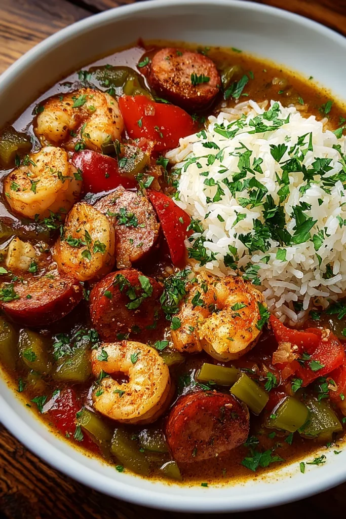 This journey through the heart of Louisiana cooking has taken us from crafting that deep, chocolate-brown roux to layering fragrant spices, smoky sausage, tender shrimp, and the classic “holy trinity” of onion, bell pepper, and celery. You’ve seen how each ingredient plays a vital role, how careful techniques—like constant stirring and gradual simmering—build a gumbo that’s rich, comforting, and effortlessly flavorful. From serving suggestions that transform a simple bowl into a celebratory meal, to storage methods that let you savor leftovers for weeks, this article has everything you need to master Shrimp and Sausage Gumbo in your own kitchen. Feel free to print this page and save it in your recipe binder or digital collection; it’s ready to be your go-to guide whenever you crave that soulful taste of Cajun comfort.